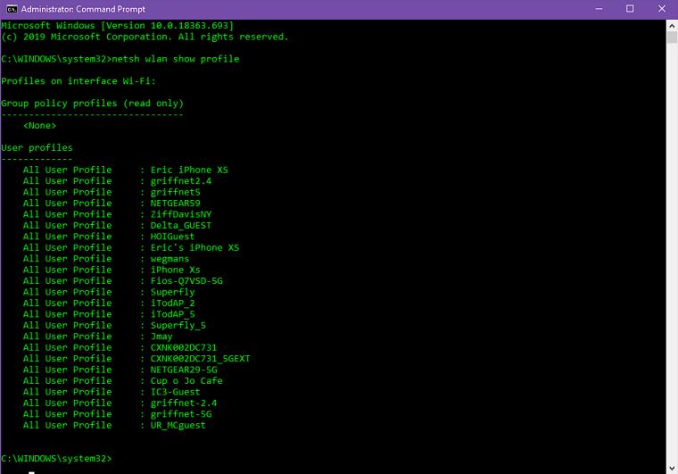 ➜ Klik Start > ketik “cmd” > klik kanan > pilih Run as Administrator - Ketik perintah ini untuk melihat semua jaringan WiFi yang pernah kamu sambung: